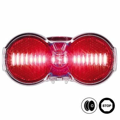 Cet éclairage arrière pour vélo TopLight Flat S D Plus intègre la Technologie LineTec, un système breveté de lentilles pour avertir les véhicules suiveurs de la distance qui les sépare du vélo. Ce feu arrière est composé de 2 parties : La première est le feu de position composé d’une LED ultra performante qui, par un jeu de réflecteurs, diffuse une bande de lumière homogène brillante très visible sur toute la largeur du feu et même sur les côtés dans un rayon de 320°. La seconde partie est le catadioptre ou réflecteur rouge.