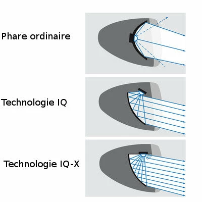 D’une intensité de 100 Lux, le feu avant est gratifié de la technologie IQ-X lui offrant une LED de haute intensité couplée d’un système de réflexion interne pour que la lumière puisse être homogène et de forte densité. Grâce à un capteur de luminosité, il peut définir de façon automatique l’intensité de lumière nécessaire à un bon éclairage.