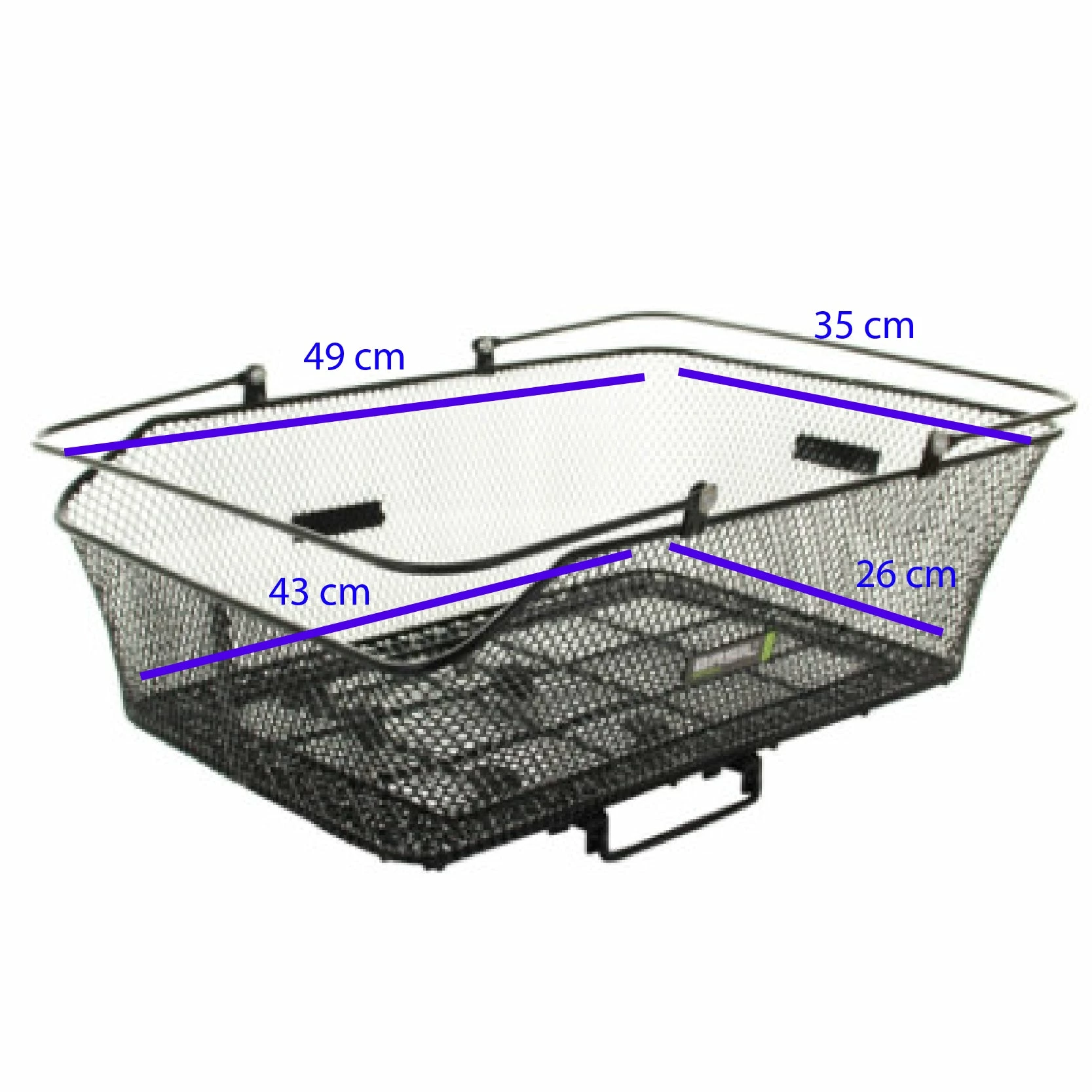 Le panier de vélo California de la marque Basil permet de transporter beaucoup d’affaires. A la fois sobre et moderne, ce panier vélo est disponible en noir. Ses dimensions sont 51 cm de long, 31 cm de large et 18 cm de hauteur. En acier, il est constitué de mailles fines. Il est à installer dans le sens de la longueur du porte-bagage. Le panier pèse 1 kilo 660 grammes.